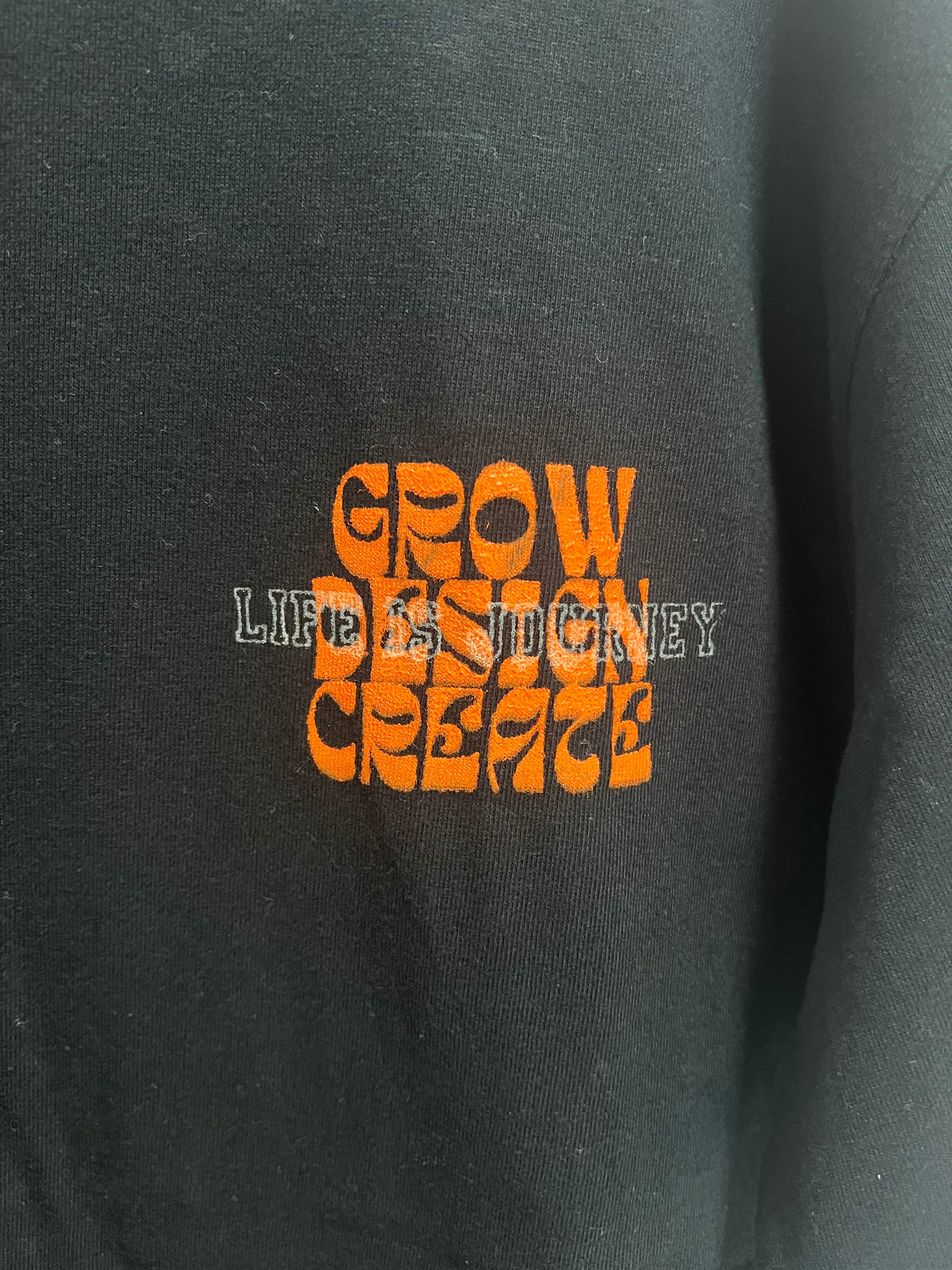 胸にOGロゴの上に蓄光塗料でLIFE IS JOURNEYをプリント。