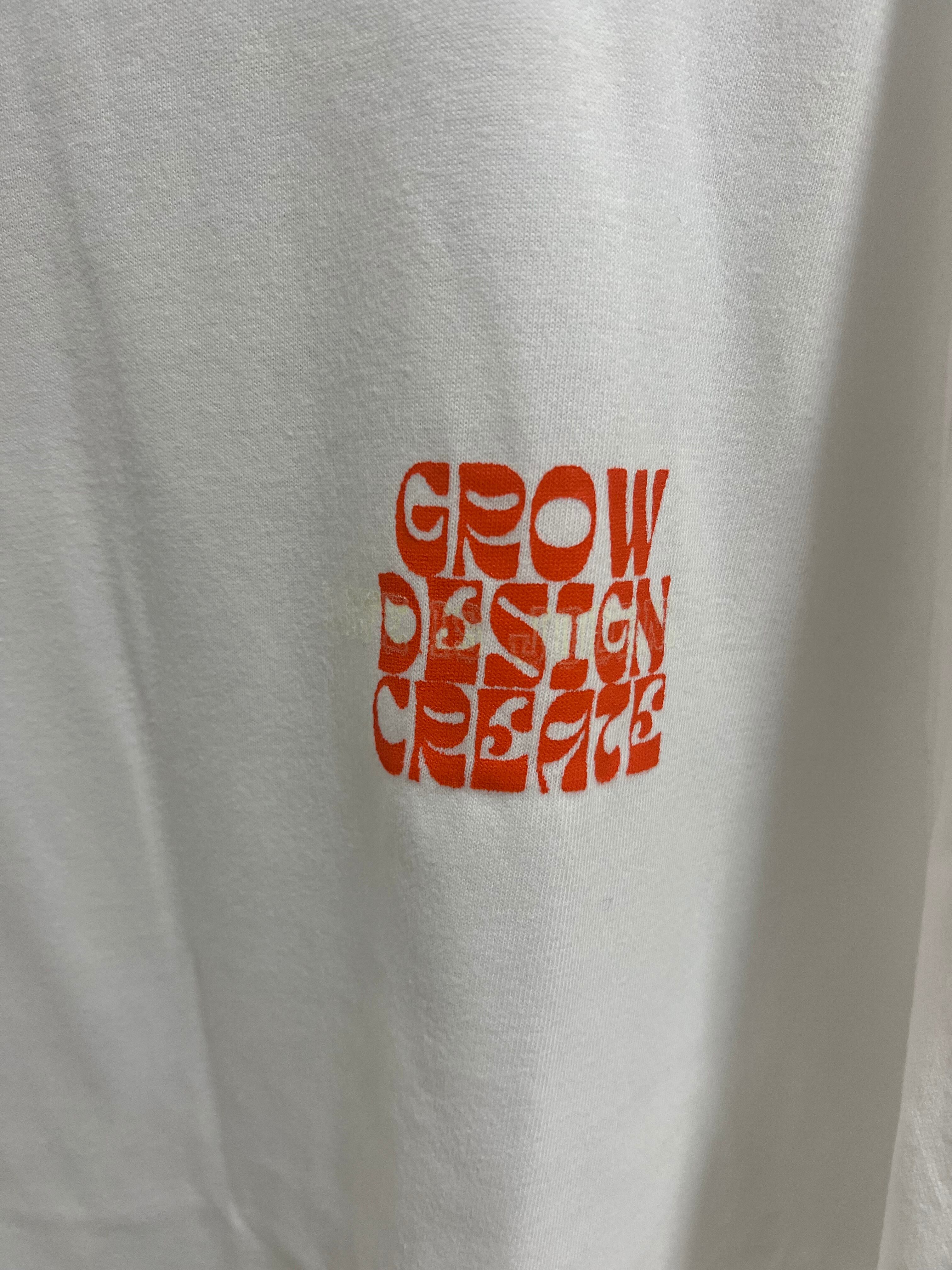 胸にOGロゴの上に蓄光塗料でLIFE IS JOURNEYをプリント。